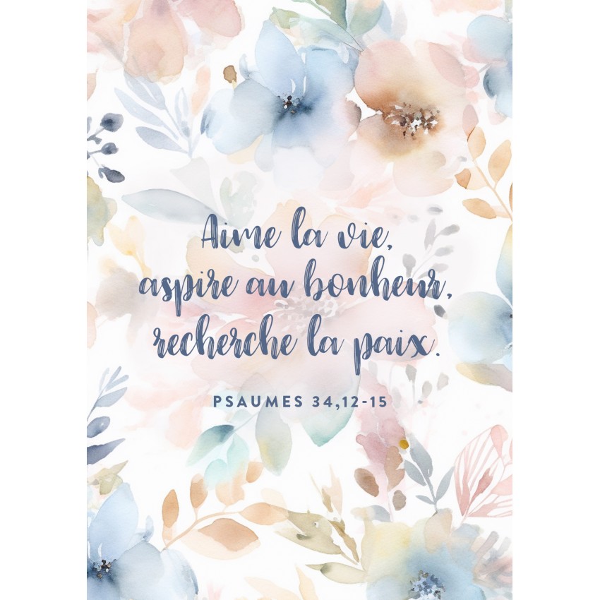 Jolie carte Motif floral à l'aquarelle avec verset biblique ! La carte fait partie de la Nouvelle Collection pour femmes "Aime la vie...".