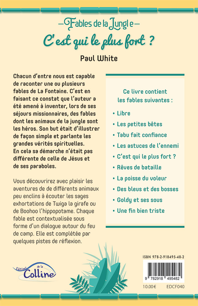 Chacun d’entre nous est capable de raconter une ou plusieurs fables de La Fontaine. C’est en faisant ce constat que l’auteur a été amené à inventer, lors de ses séjours missionnaires, des fables dont les animaux de la jungle sont les héros. Son but était d’illustrer de façon simple et parlante les grandes vérités spirituelles. En cela sa démarche n’était pas différente de celle de Jésus et de ses paraboles.