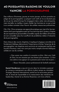 Dans chacun des courts chapitres, il explique la logique concrète et le fondement biblique démontrant l'importance d'éviter l'emprise de la pornographie. Les chapitres sont succincts et contiennent parfois une touche d'humour, mais n'en sont pas moins remplis d'armes bibliques solides en vue du combat.