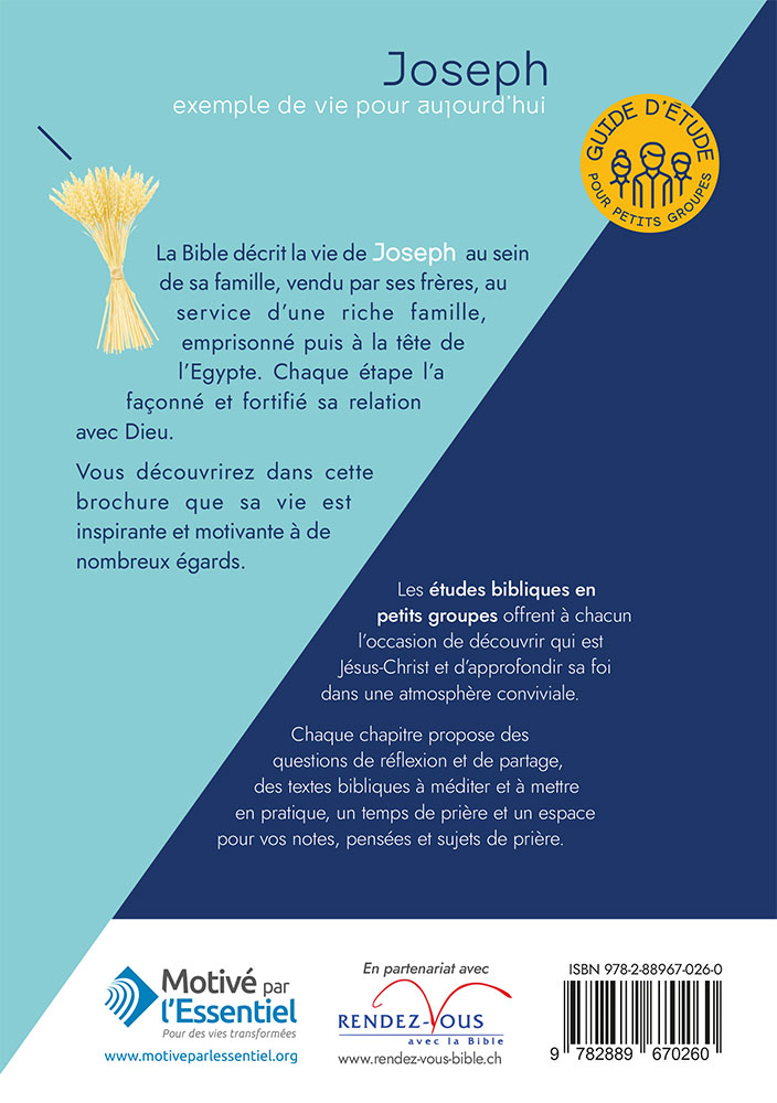 Ce cahier d'étude est basé sur le livre "Joseph, exemple de vie pour aujourd'hui"