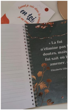 Il y a une large place donnée à tes réflexions, ce que tu veux dire à Dieu : que ce carnet ne soit pas juste des méditations à consommer mais un espace où tu peux répandre ton cœur devant Dieu et te laisser remplir par Lui.