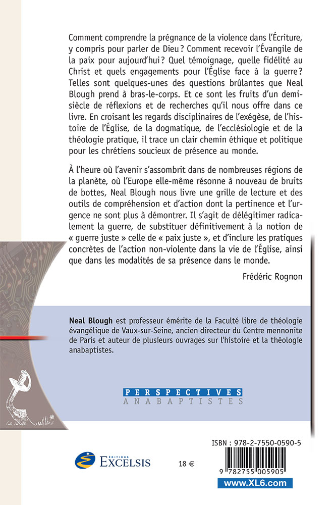 Comment comprendre la prégnance de la violence dans l’Écriture, y compris pour parler de Dieu ? Comment recevoir l’Évangile de la paix pour aujourd’hui ? Quel témoignage, quelle fidélité au Christ et quels engagements pour l’Église face à la guerre ? Telles sont quelques-unes des questions brûlantes que Neal Blough prend à bras-le-corps. Et ce sont les fruits d’un demi-siècle de réflexions et de recherches qu’il nous offre dans ce livre. En croisant les regards disciplinaires de l’exégèse, de l’histoire de l’Église, de la dogmatique, de l’ecclésiologie et de la théologie pratique, il trace un clair chemin éthique et politique pour les chrétiens soucieux de présence au monde.