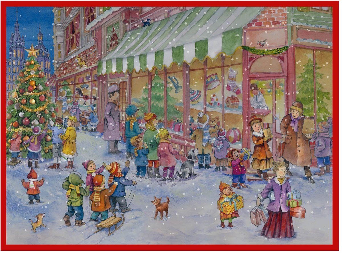 Un joli calendrier de l'Avent de style alpin combine des éléments victoriens. Les images au dos s'illuminent lorsque vous accrochez le calendrier devant une source de lumière, et bien sûr, le mica est indispensable !