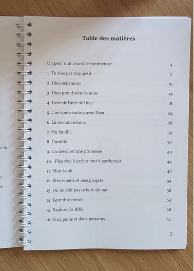 Des exemples de thème : Devenir l'ami de Dieu, Ma famille, Mes amitiés, Un devoir et une promesse, Plus rien à cacher tout à pardonner, Mes talents et mes progrès, Mon école (école ou IEF), On ne doit pas te faire du mal, Une conversation avec lui.... et bien d'autres