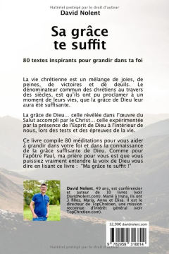 Ce livre compile 80 méditations pour vous aider à grandir dans votre foi et dans la connaissance de la grâce suffisante de Dieu. Comme pour l'apôtre Paul, ma prière pour vous est que vous puissiez vraiment entendre la voix de Dieu vous dire en lisant ce livre : “Ma grâce te suffit !”