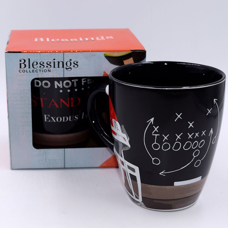 Avec son casque et son schéma de jeu, ce mug de 28 cl rappelle à votre supporter de football de toujours suivre le plan de Dieu.